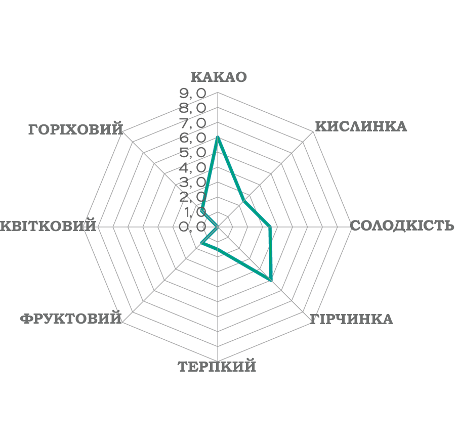 Опис: Цей кувертюр уособлює міцність і вишуканість колумбійського какао Fino de Aroma. Шоколад, сповнений контрастів вбирає в себе різноманіття поєднання смаків. Відтінки какао наповнюють почуття своїм ароматом, посиленим гіркими смаженими нотами, які тривають і надають йому типову міцність какао з півночі країни. Особливі кавові нотки, соковитість і фруктова кислинка надають цьому чудовому шоколаду останні штрихи.