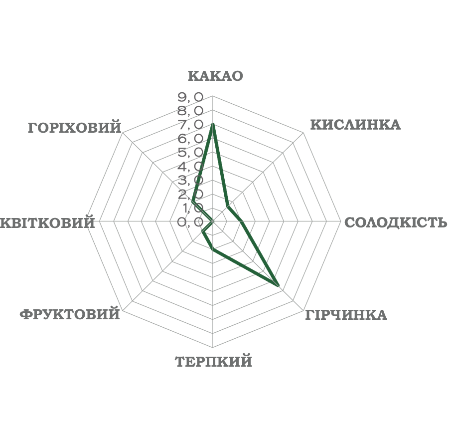 Вміст: Мін. какао продукту 85%, молока 0%, жир 50%.