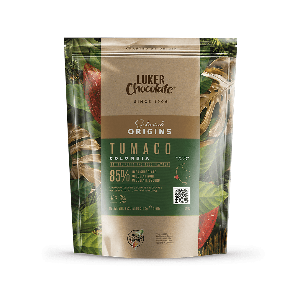 Опис: Чорний шоколад з вишуканим характером та виразним ароматом, характерним для колумбійського какао Fino de Aroma. Міцний гіркуватий смак і витончена солодкість у поєднанні з квітковими та фруктовими нотками надають шоколаду найвищої виразності.
